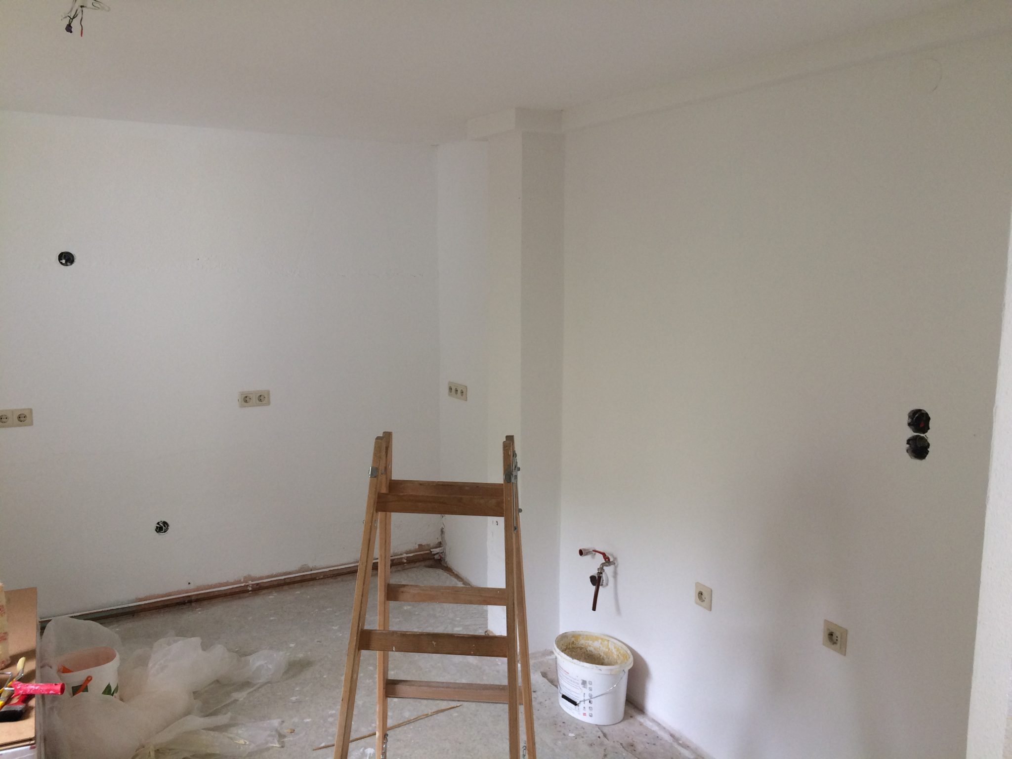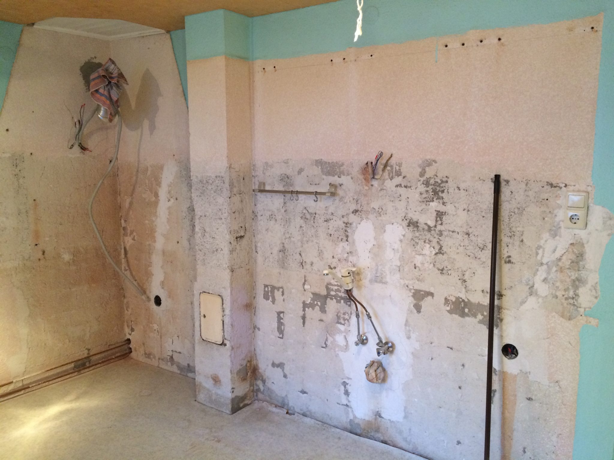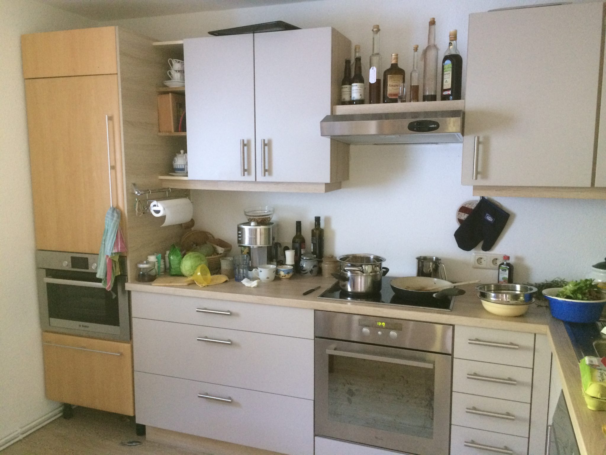 Die Rettung: durch eine glückliche Fügung gelangten wir sehr günstig an eine 3 Jahre alte und wenig benutzte Küche. Wir mussten sie zwar etwas anders wieder aufbauen, aber im Großen und Ganzen passt sie.
