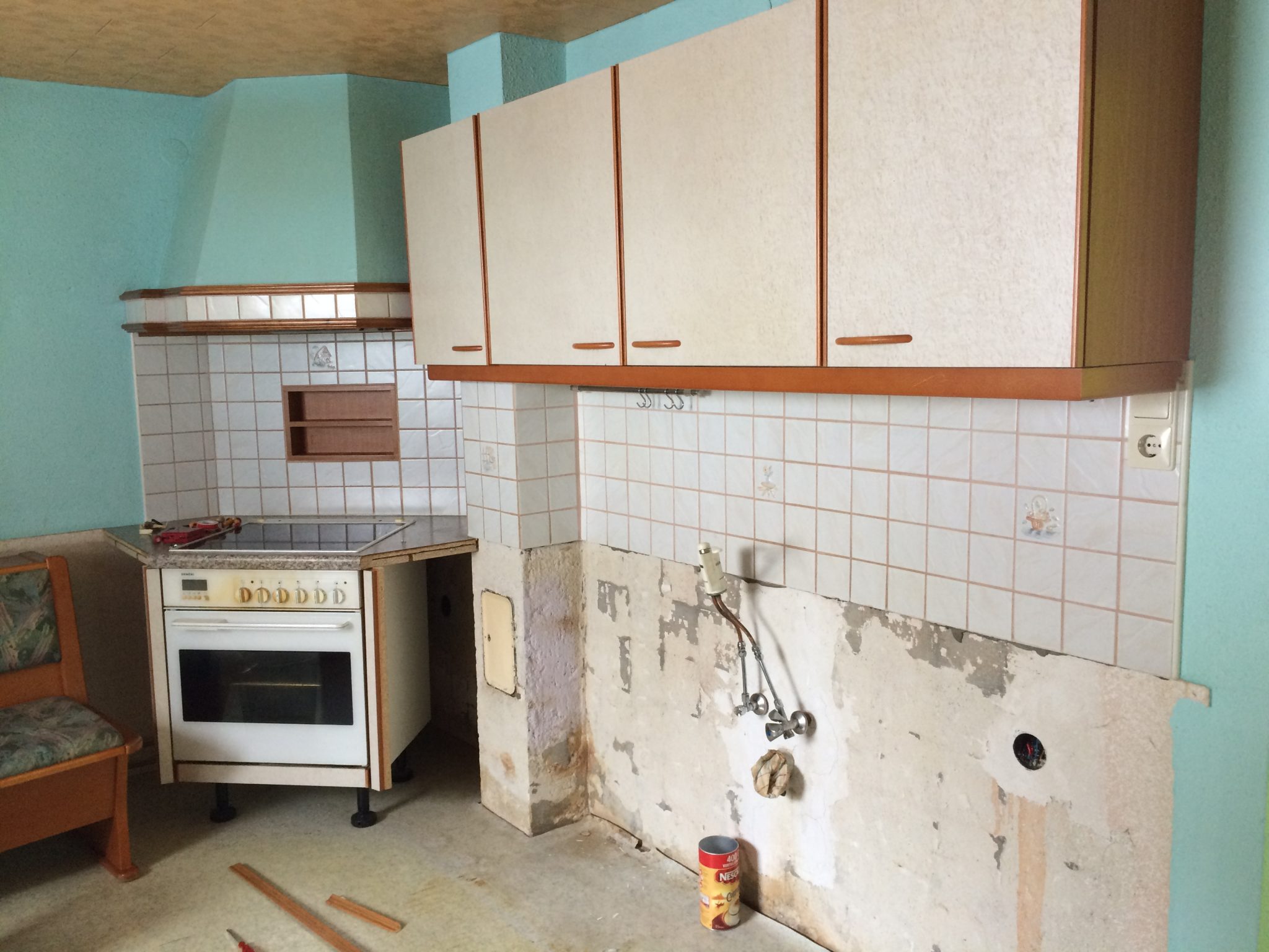 Die Küche selbst war zwar etwas „altfadrisch“, aber durchaus von guter Qualität, daher fiel uns die Entscheidung recht schwer. Schließlich entschlossen wir uns doch für eine Neue und es ging an’s Abbauen: