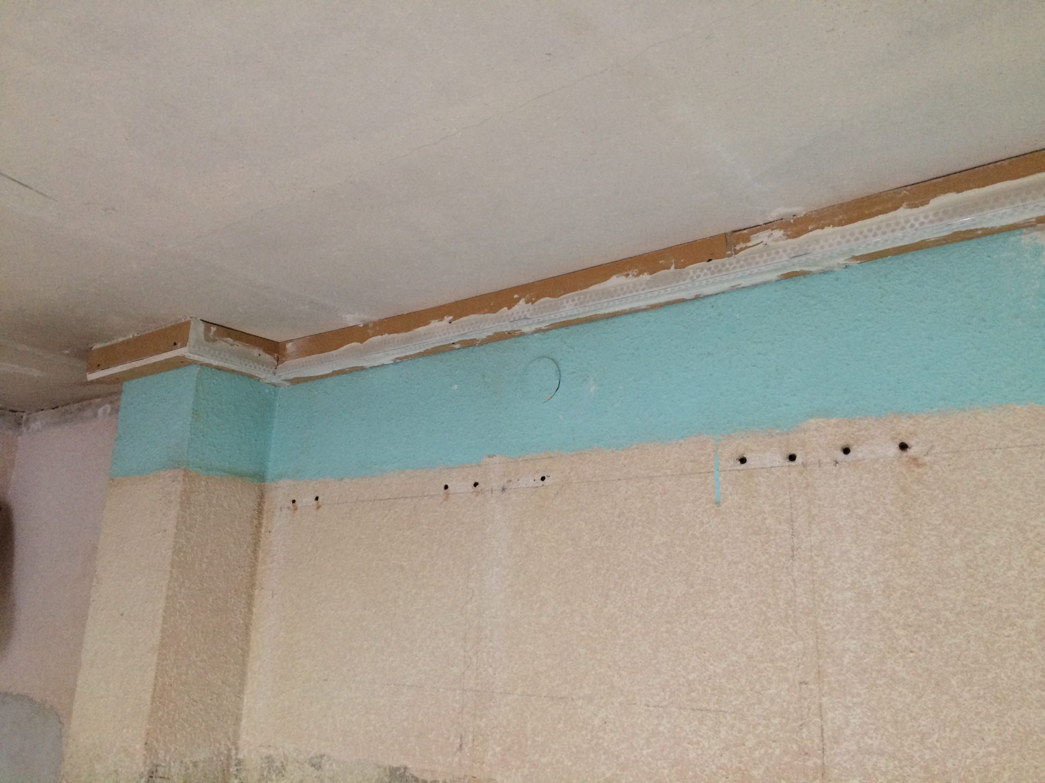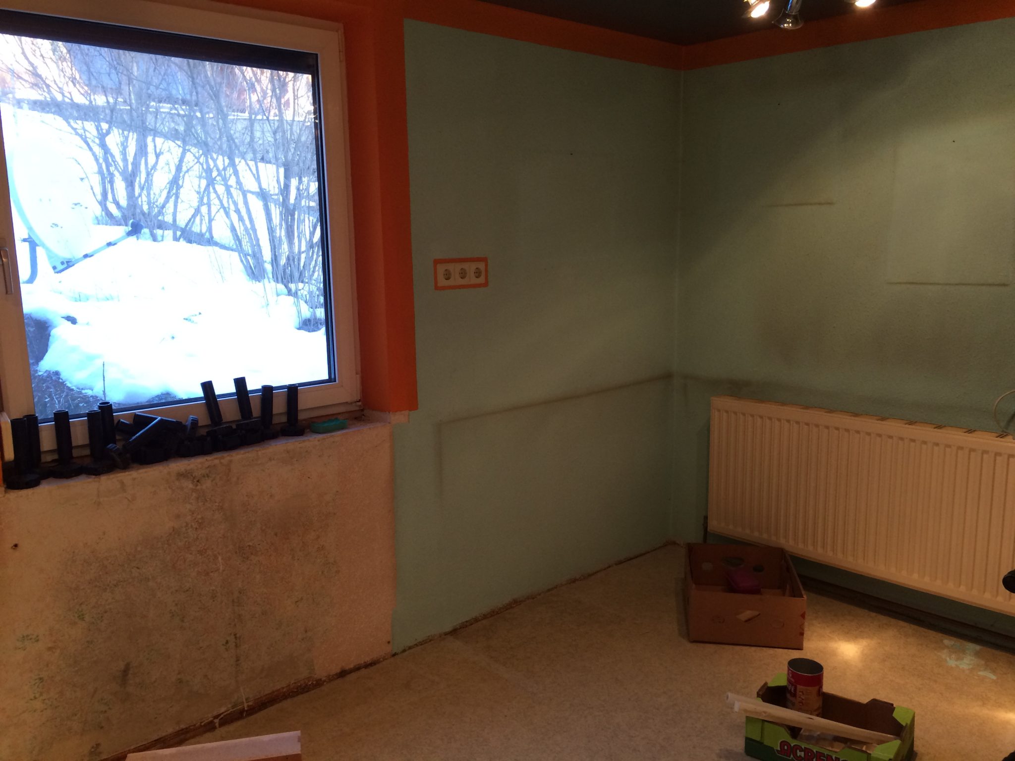 Bei der Gelegenheit versetzte ich die Anschlüsse für das Waschbecken an die geplante Stelle und verlegte auch gleich Leitungen für das neue Badezimmer im Dachgeschoß. Dann noch Steckdosen versetzen, die Stromleitung für den Herd verstecken, wo notwendig verputzen (nicht gerade meine Lieblingsarbeit!) und schließlich ausmalen. Den neuen Vinylboden zu verlegen war dann nur mehr eine Kleinigkeit.